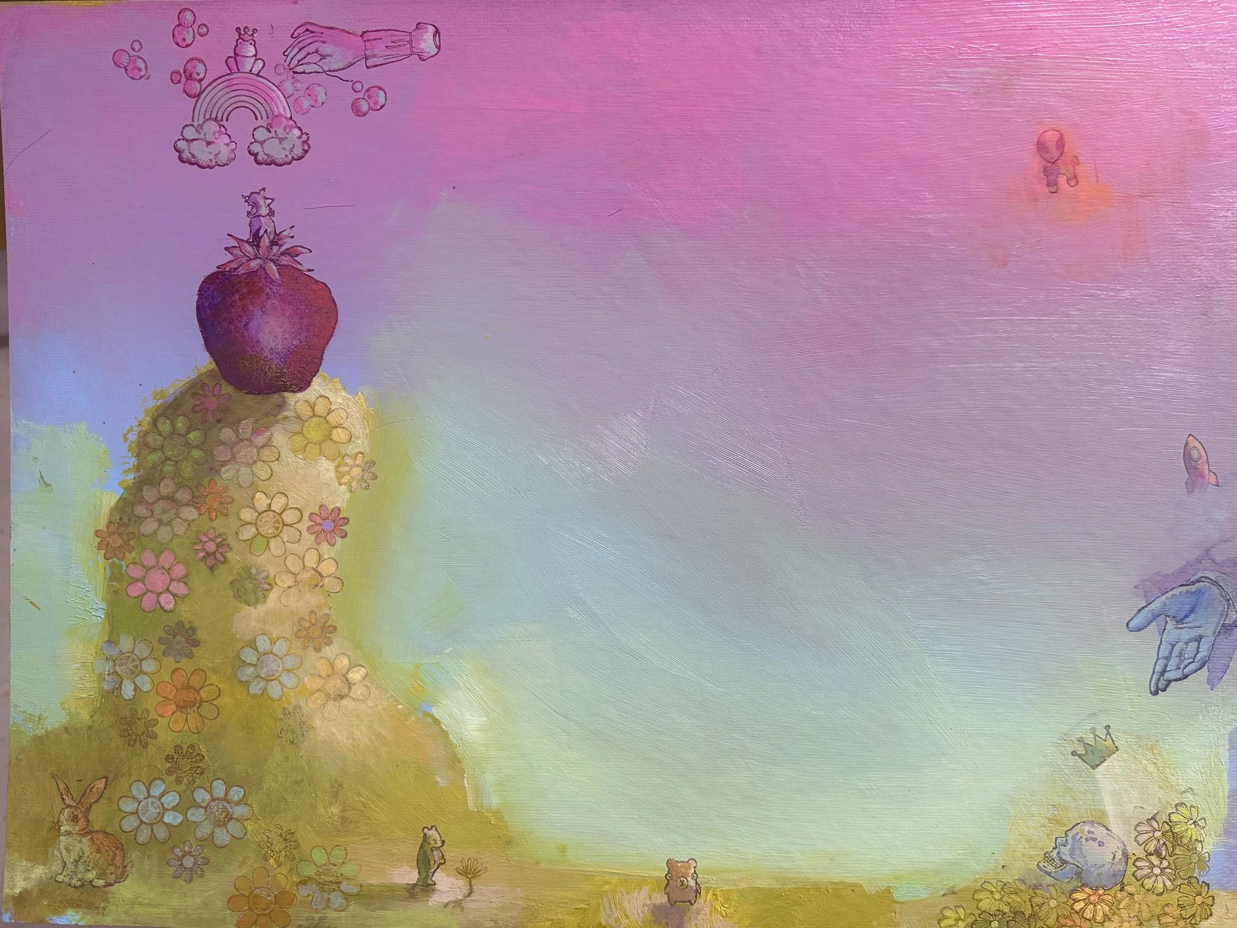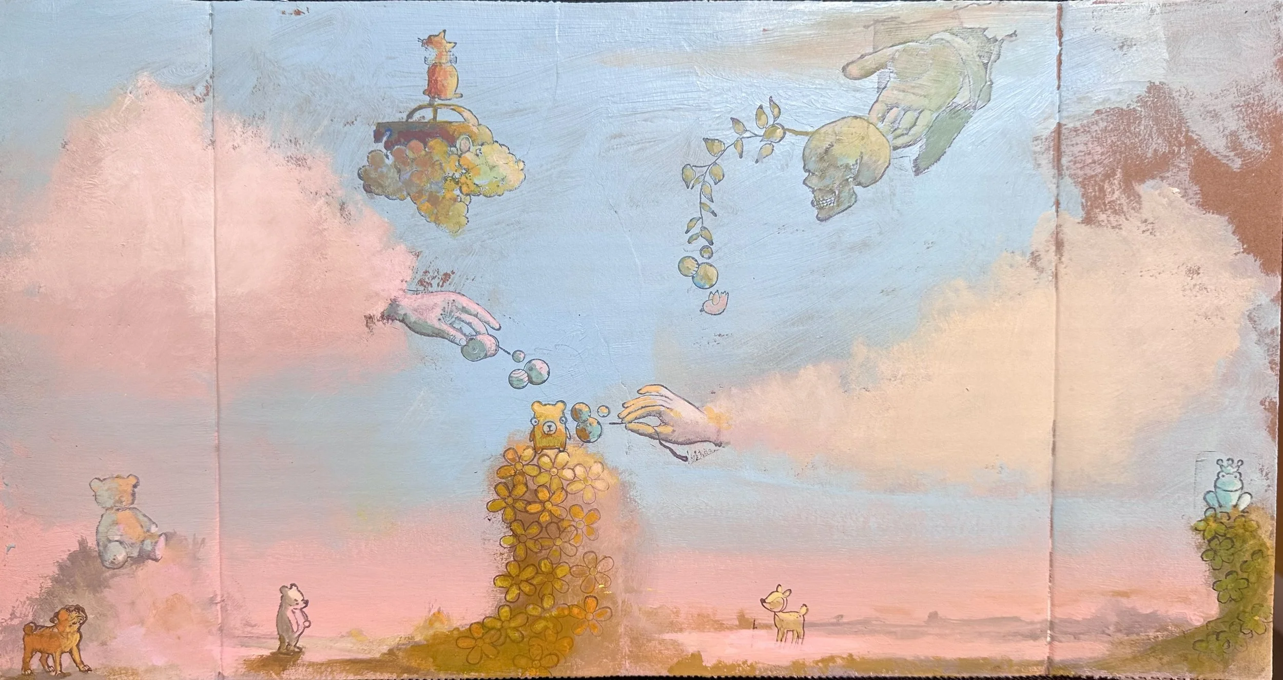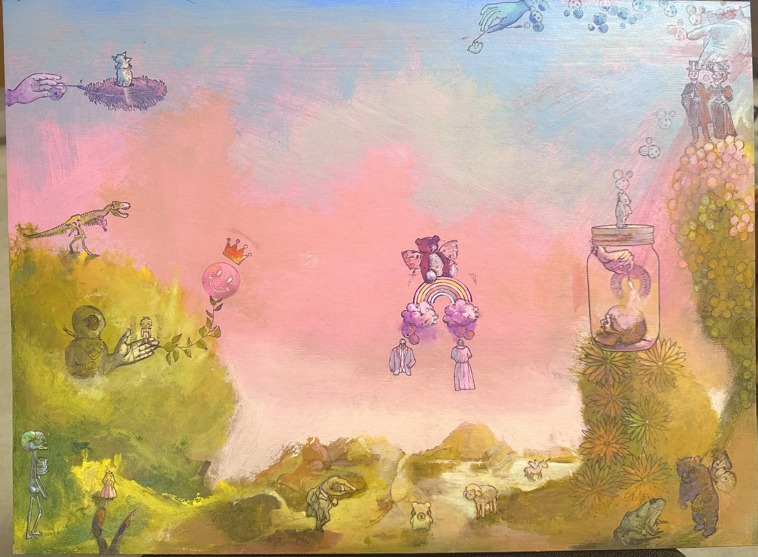 Acrylic, Gouache, Mixed Media on Cardboard, 9.5” x 17.5” 2024