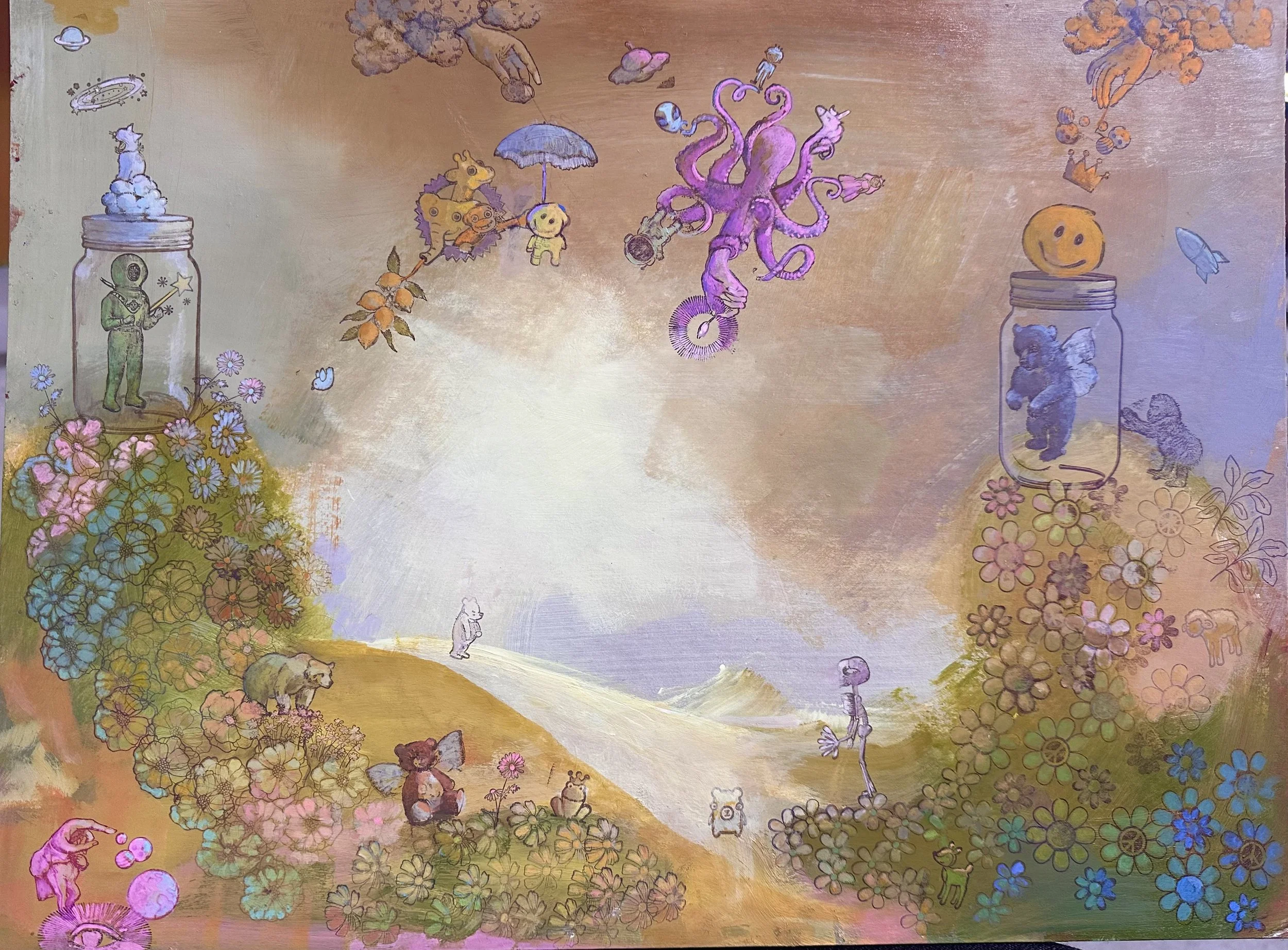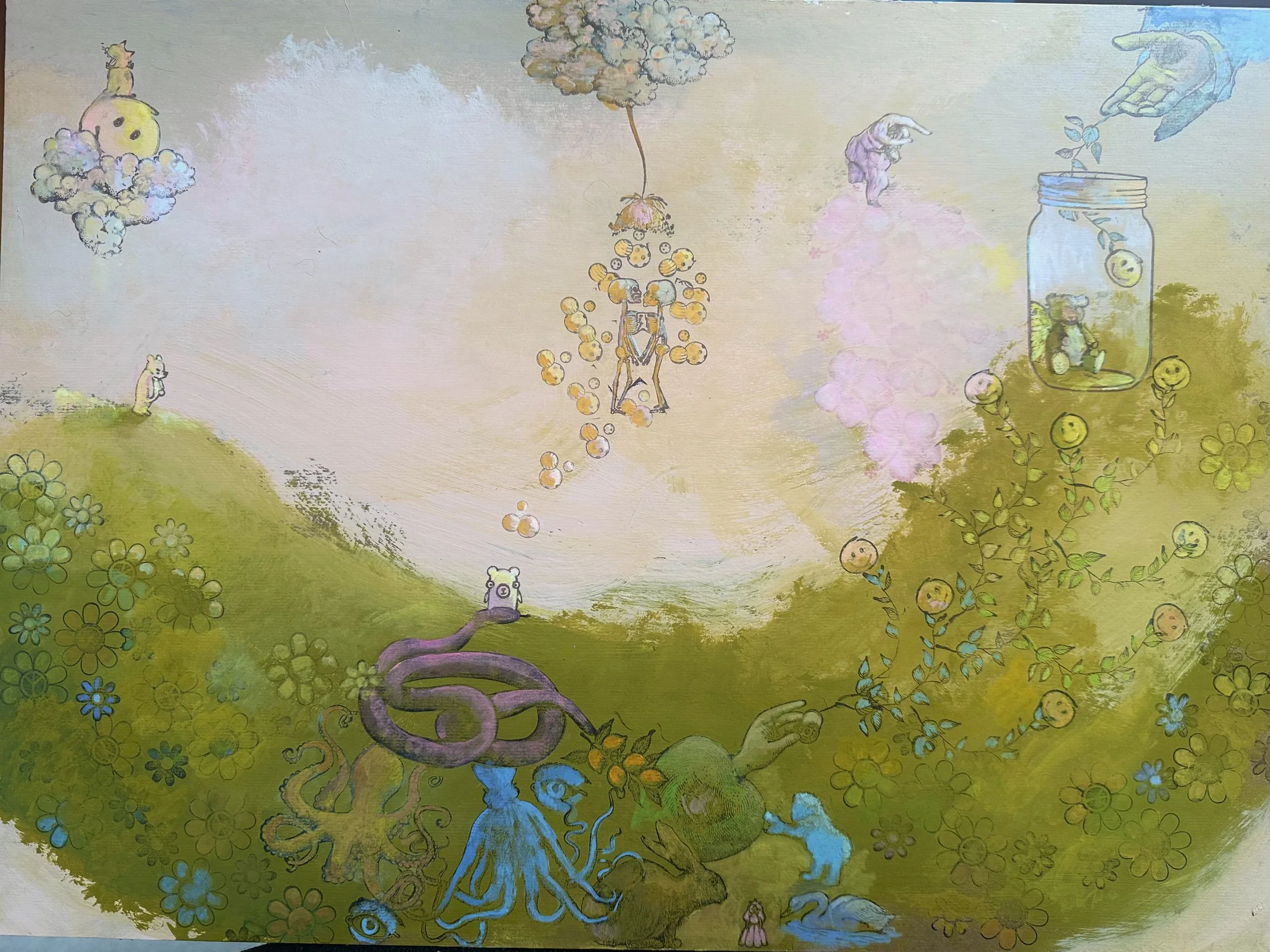 Acrylic + Gouache on tin, 8” x 8”, 2023