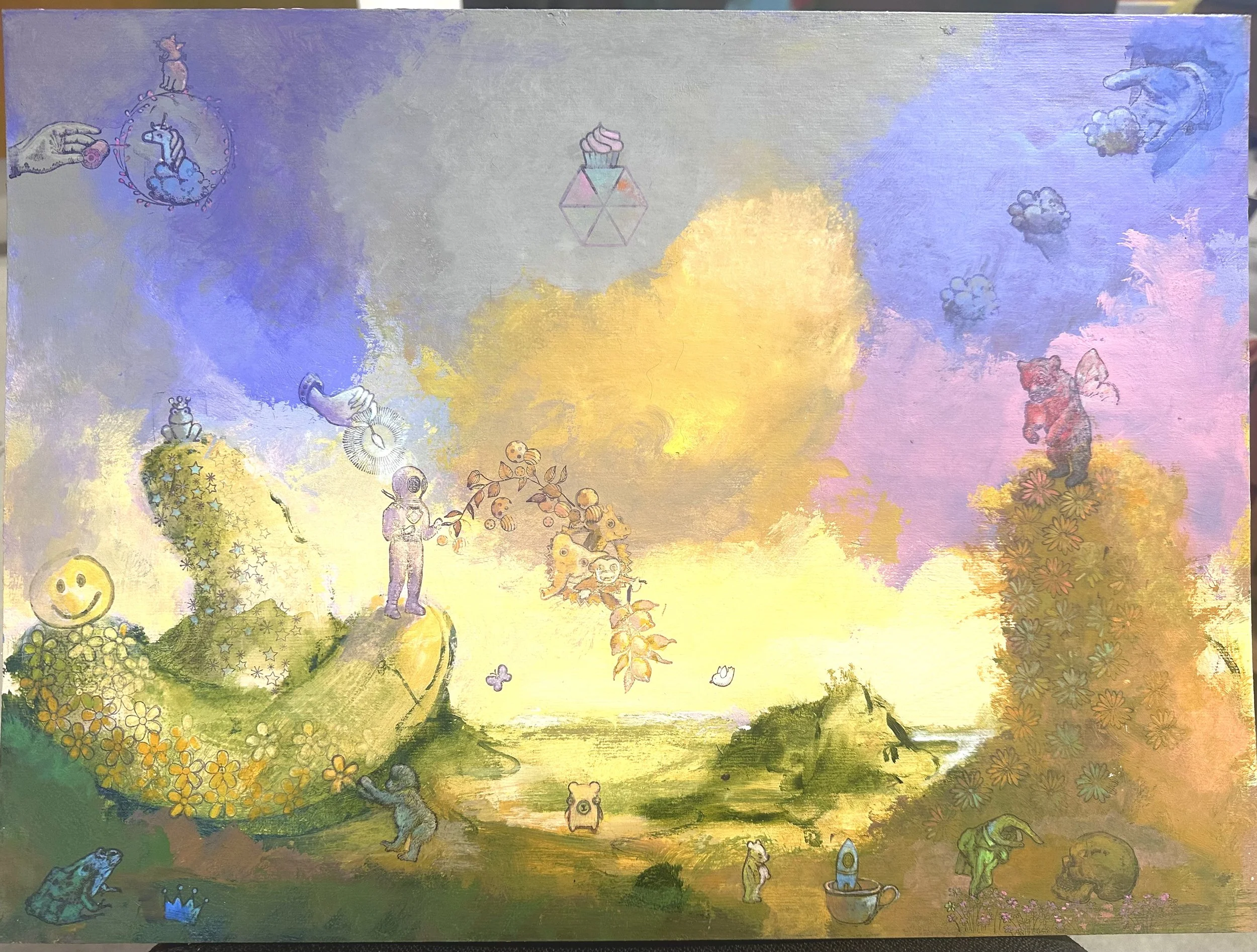 Acrylic & Oil on wood panel, 16” x 12”, 2023