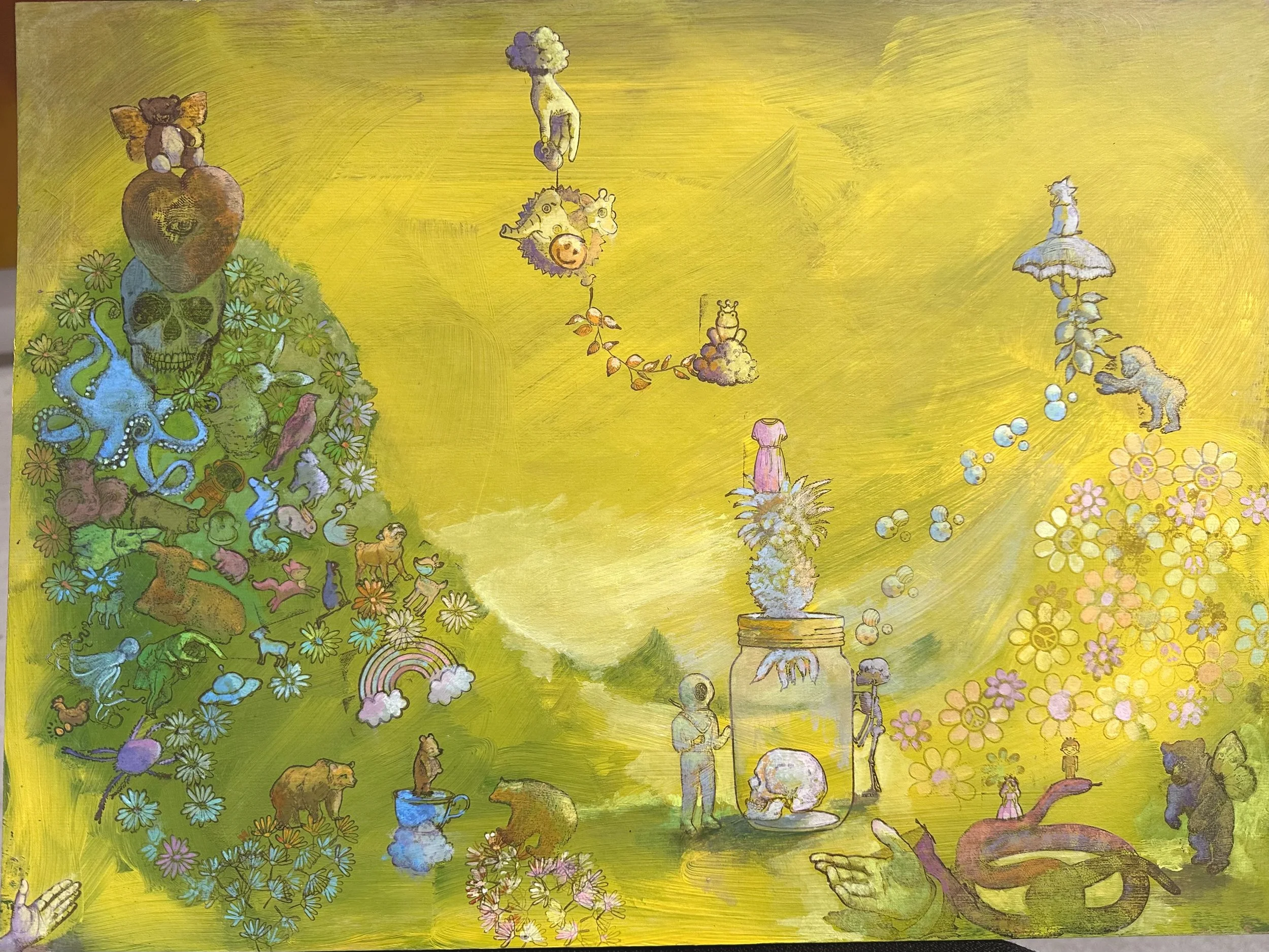Acrylic, Gouache, Mixed Media on Book Binder Board, - 15” x 20” 2024