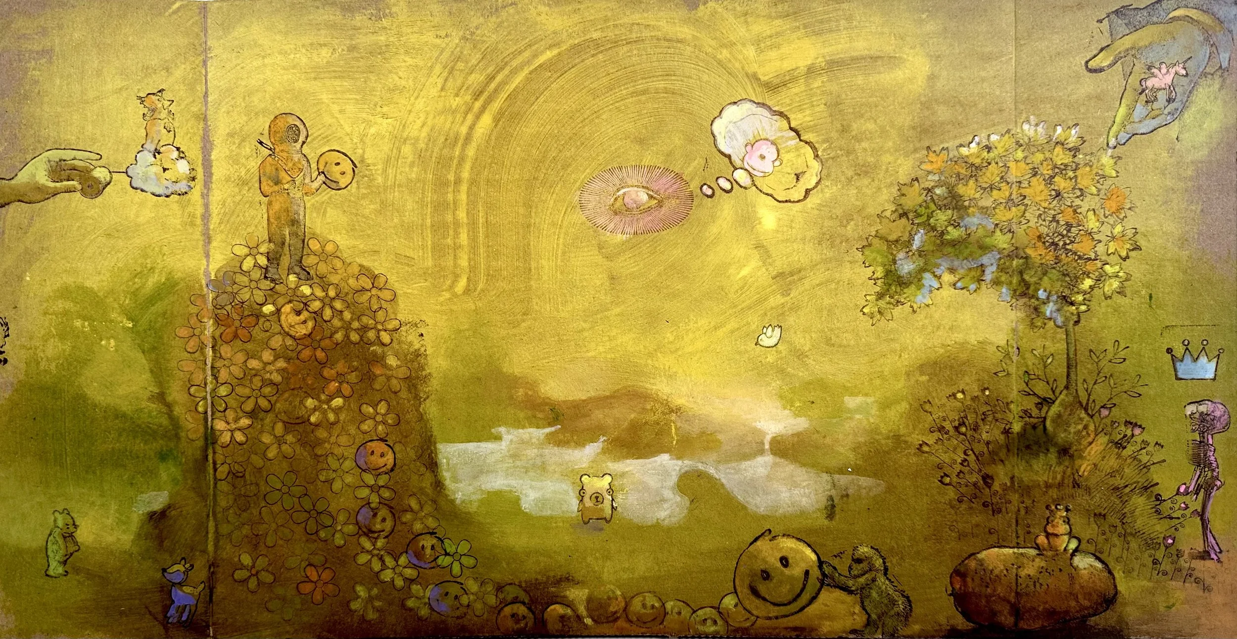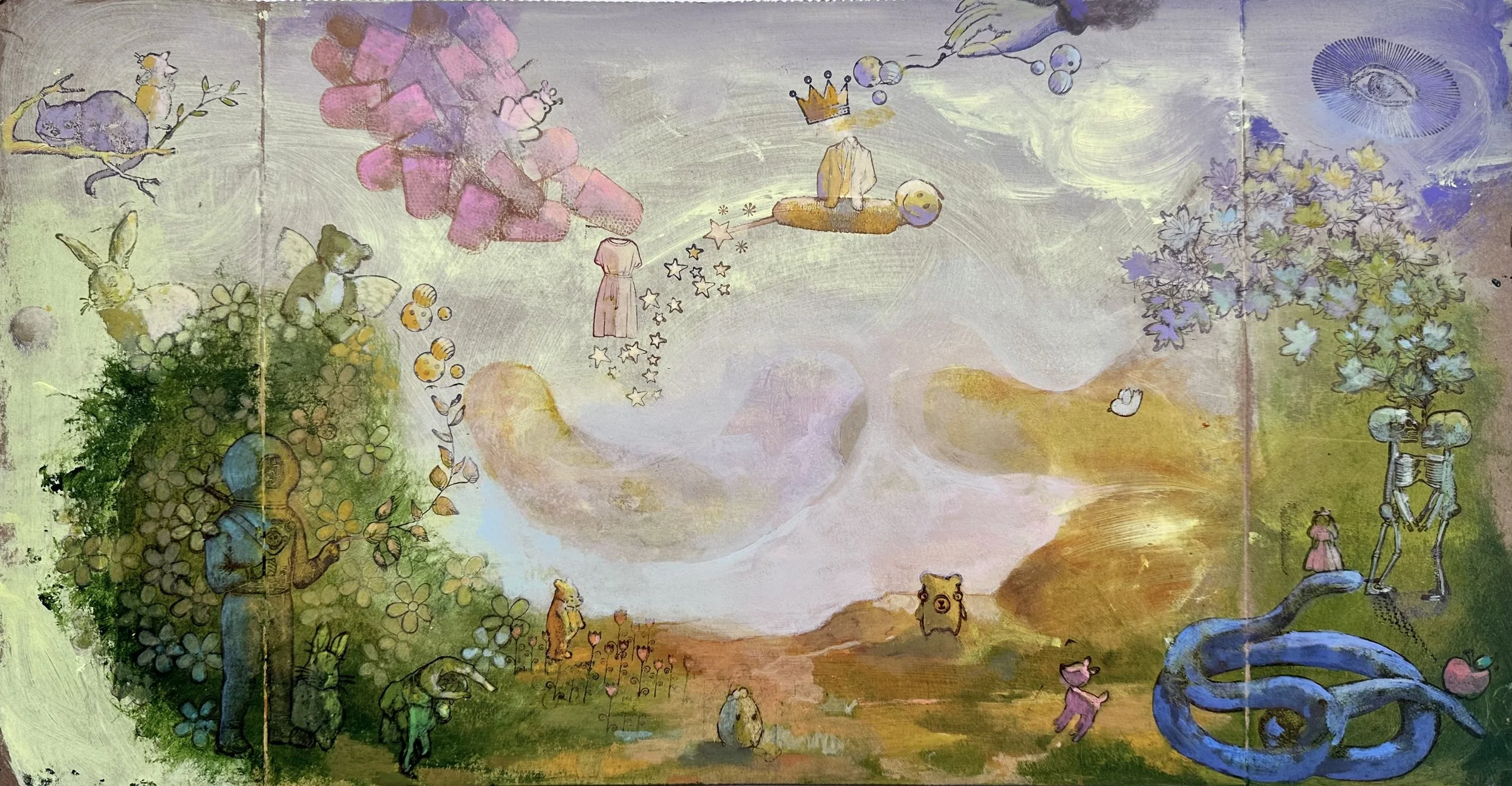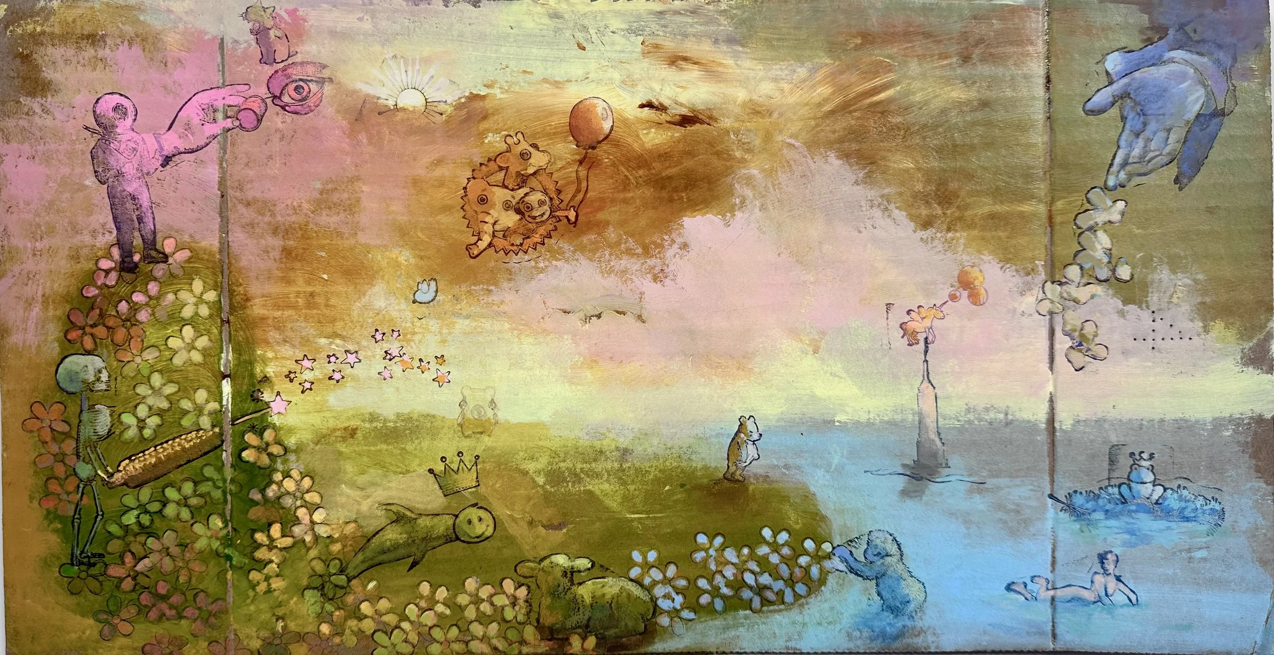 Acrylic, Gouache, Mixed Media on Cardboard - 9.5” x 17.5”, 2024